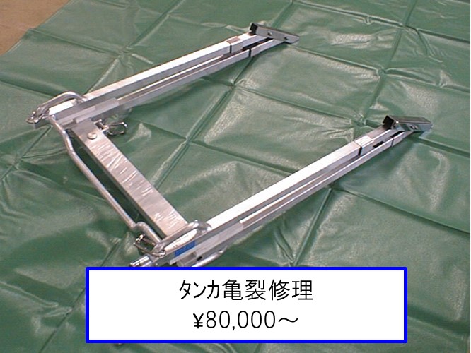 タンカの亀裂修理は1台、¥80,000~です。状態により料金は前後します。また、貸出品のご用意も可能です。(送料は別途追加料金をいただきます。)※貸出状況によりご用意が出来ない場合もございます。