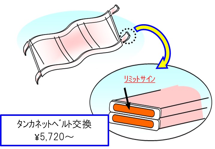 タンカネット・ベルト式のベルト交換は1枚、¥5,720~です。こちらもネット本体の生地状態によって修理不可の可能性があります。