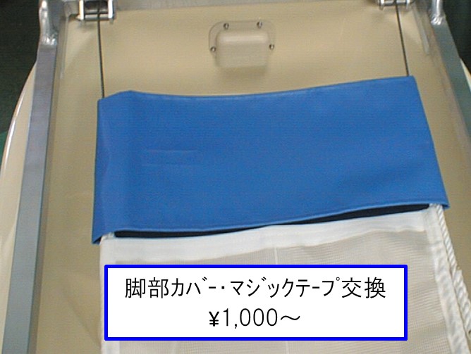 脚部カバー・マジックテープの交換は頭部ベルト・マジックテープ同様1枚、¥1,000~です。こちらも脚部カバーの生地状態によって修理不可の可能性があります。