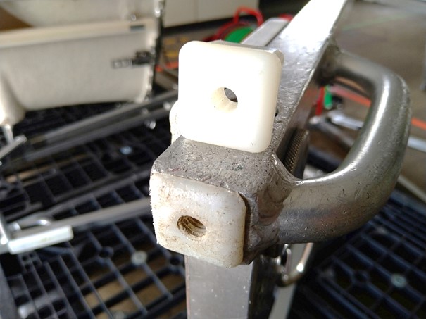 プラチップが破損した場合はマイナスドライバーで引っ掛けるか、カッターで引っ掛けながら引き抜きます。タンカフレームが削れ、さらに使用を続けるとこの様に角が割れてタンカフレームの破損を招きます。そうなる前にプラチップを交換してください。