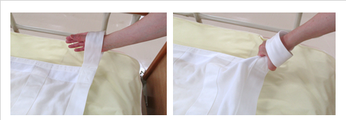 ②当社浴槽にぴったりと合う折り返しで安定性を確保します。