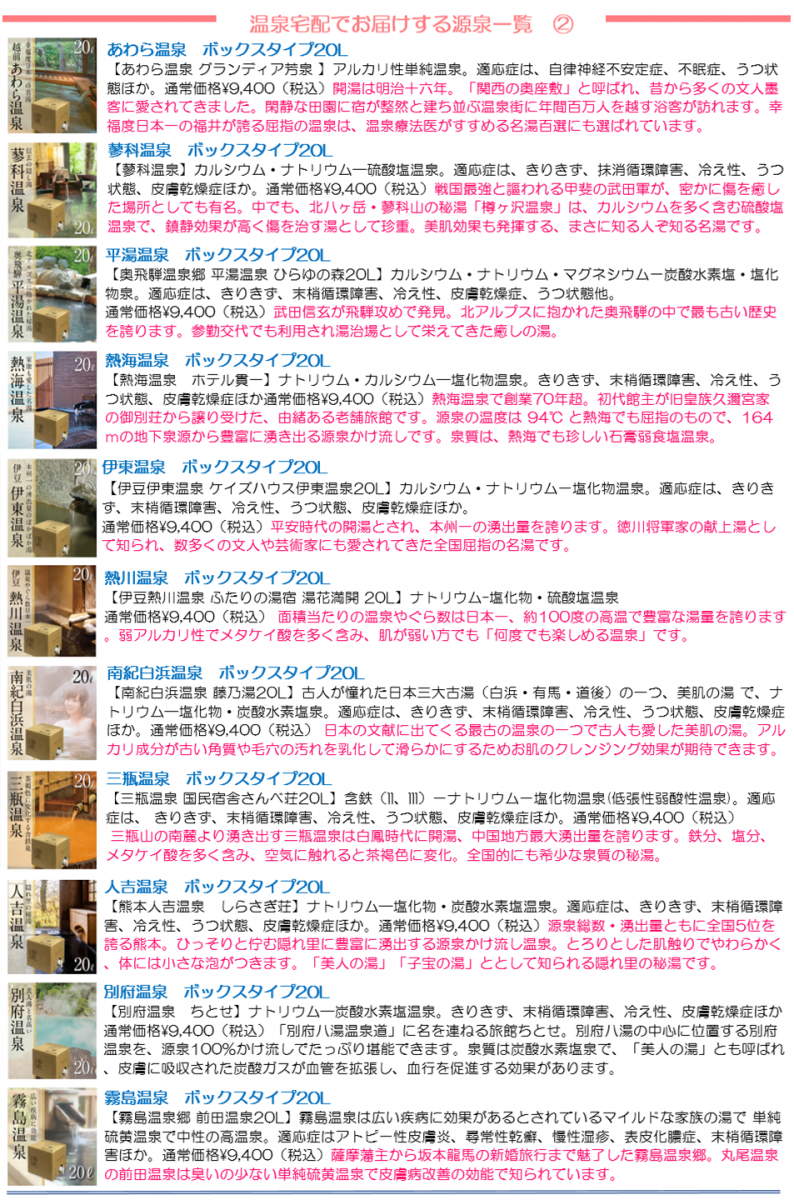 温泉宅配のごあんない