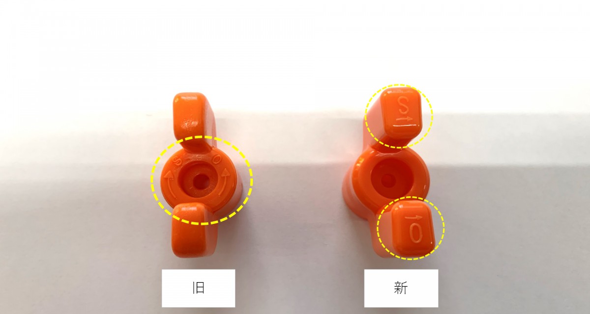 初期の新型のツマミのキャップはオレンジだったため、キャップの色で新旧を見分ける方法は確実ではありません。