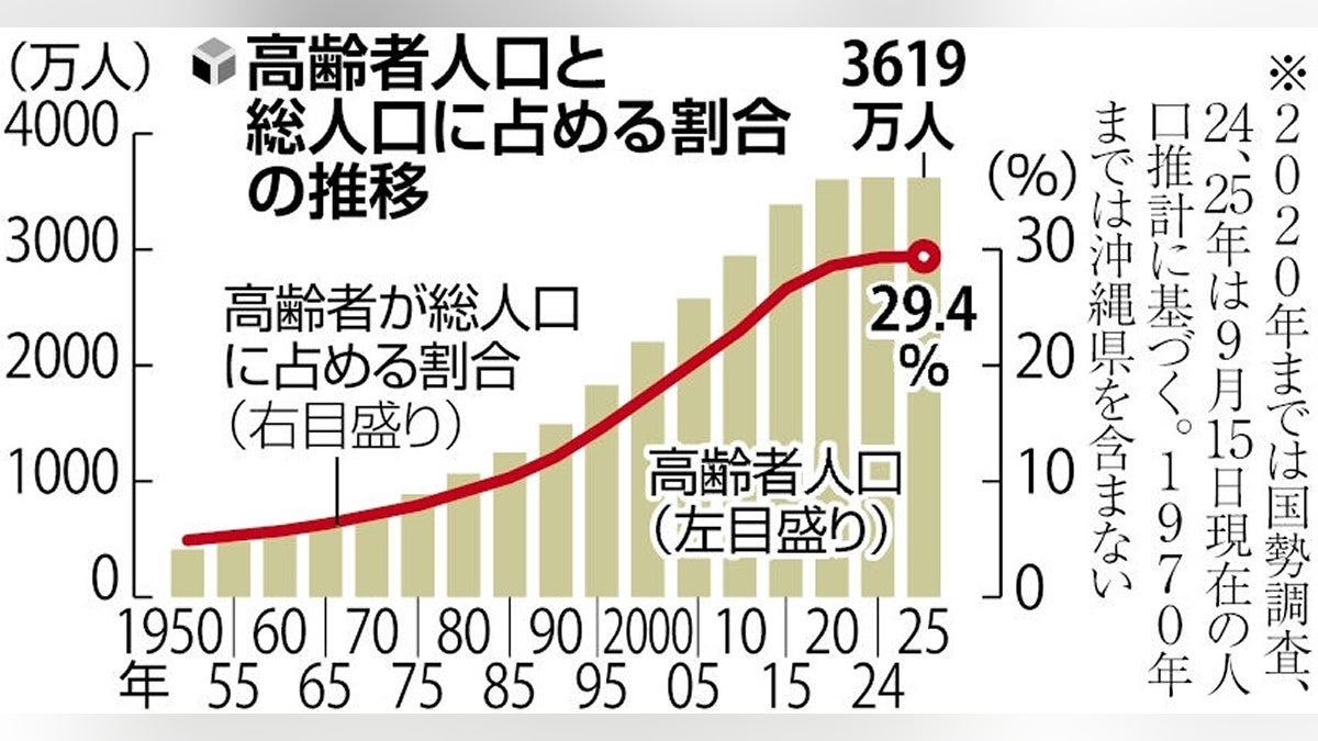 ▼(出典元:読売新聞2025年9月14日(日)「65歳以上 最高29.4% 総務省推計」記事より引用)