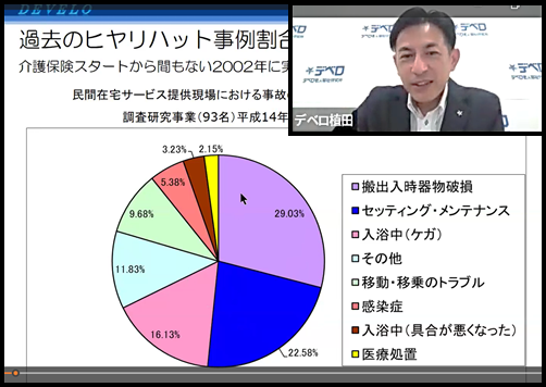 訪問入浴介護のヒヤリハットとクレーム発生時の基本対応について、2つの項目について説明させていただきました。