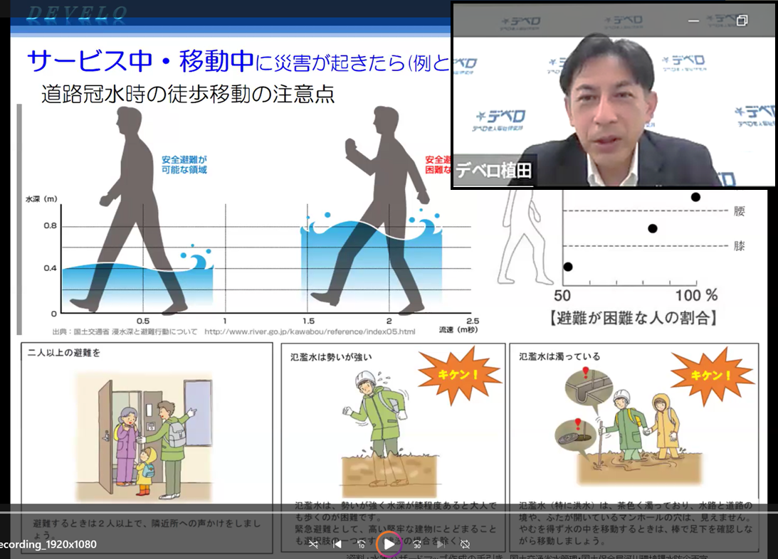 今回のレベルアップ講座は、「訪問入浴介護」に特化した、災害発生時の対応の実際について、説明させていただきました。